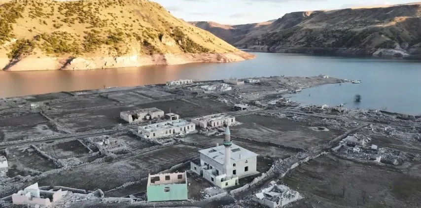 Ortaya çıkan kalıntılar arasında köyün camisi, kilisesi ve taş yapılardan oluşan evleri dikkat çekiyor. Bölgenin tarihine ışık tutan bu görüntüler, dron ile de kaydedildi. Suların çekilmesiyle oluşan manzara hem yöre halkının hem de fotoğraf meraklılarının ilgisini çekti.