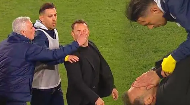 Dün akşam oynanan maç sonrası, teknik direktör Jose Mourinho ile hakemler arasında yaşanan gerginlik dikkat çekti. Maçın ardından hakemlerle el sıkışma bahanesiyle bir araya gelen Mourinho, bu sırada Okan Buruk'un sözlü ve fiziksel tahriklerine maruz kaldı. Buruk, polis çizgisini geçerek teknik direktörü saygısızca tahrik etti ve ardından yerinde duramayıp abartılı el hareketleriyle Mourinho'yu provoke etmeye çalıştı.