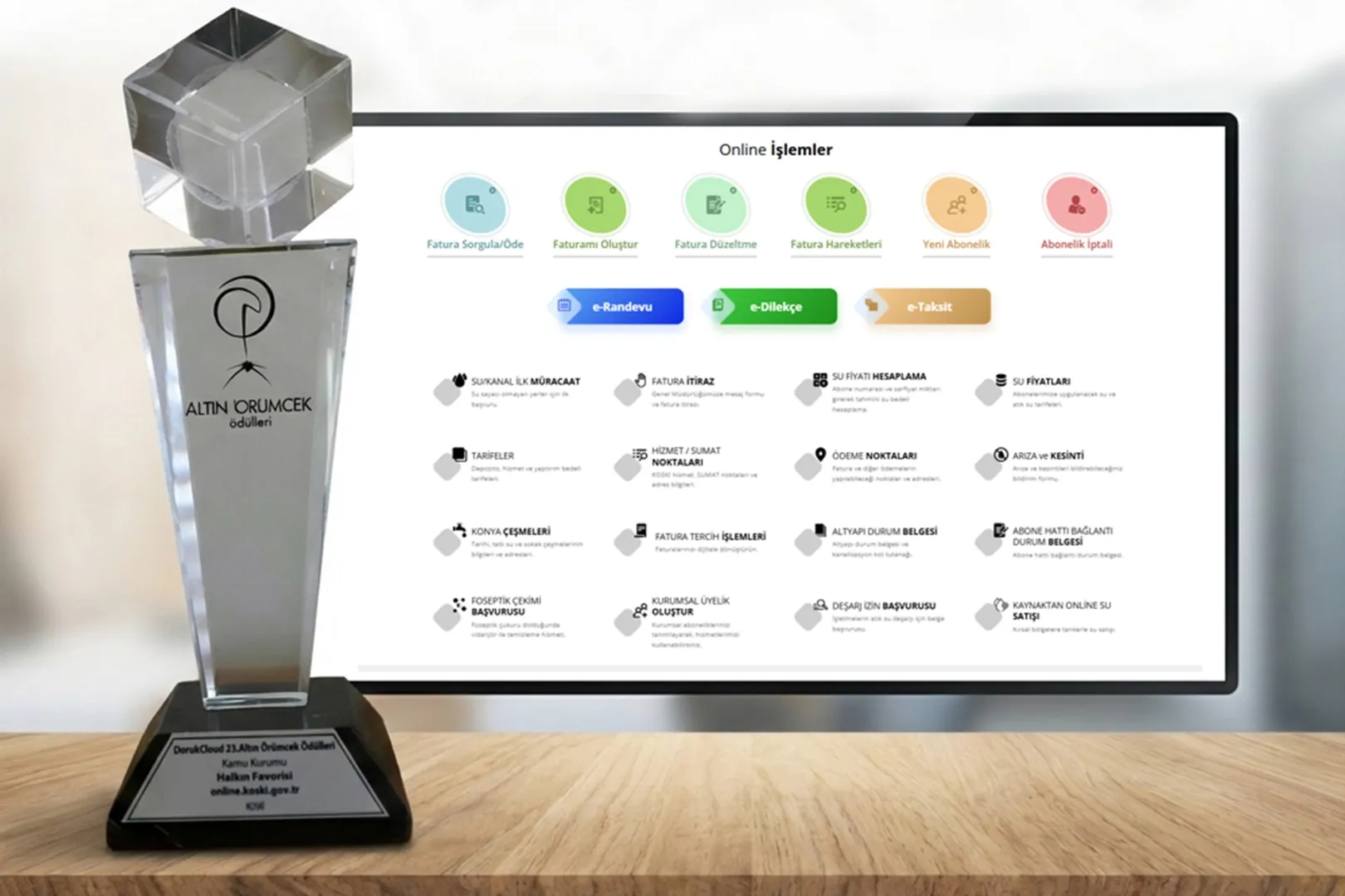 Bu kapsamda KOSKİ Genel Müdürlüğü’nün dijital hizmet platformu Online KOSKİ, 23. Altın Örümcek Ödülleri 2025’te Kamu Kurumu Kategorisi “Halkın Favorisi” seçilerek, vatandaş odaklı dijital hizmet anlayışını ödülle taçlandırdı.