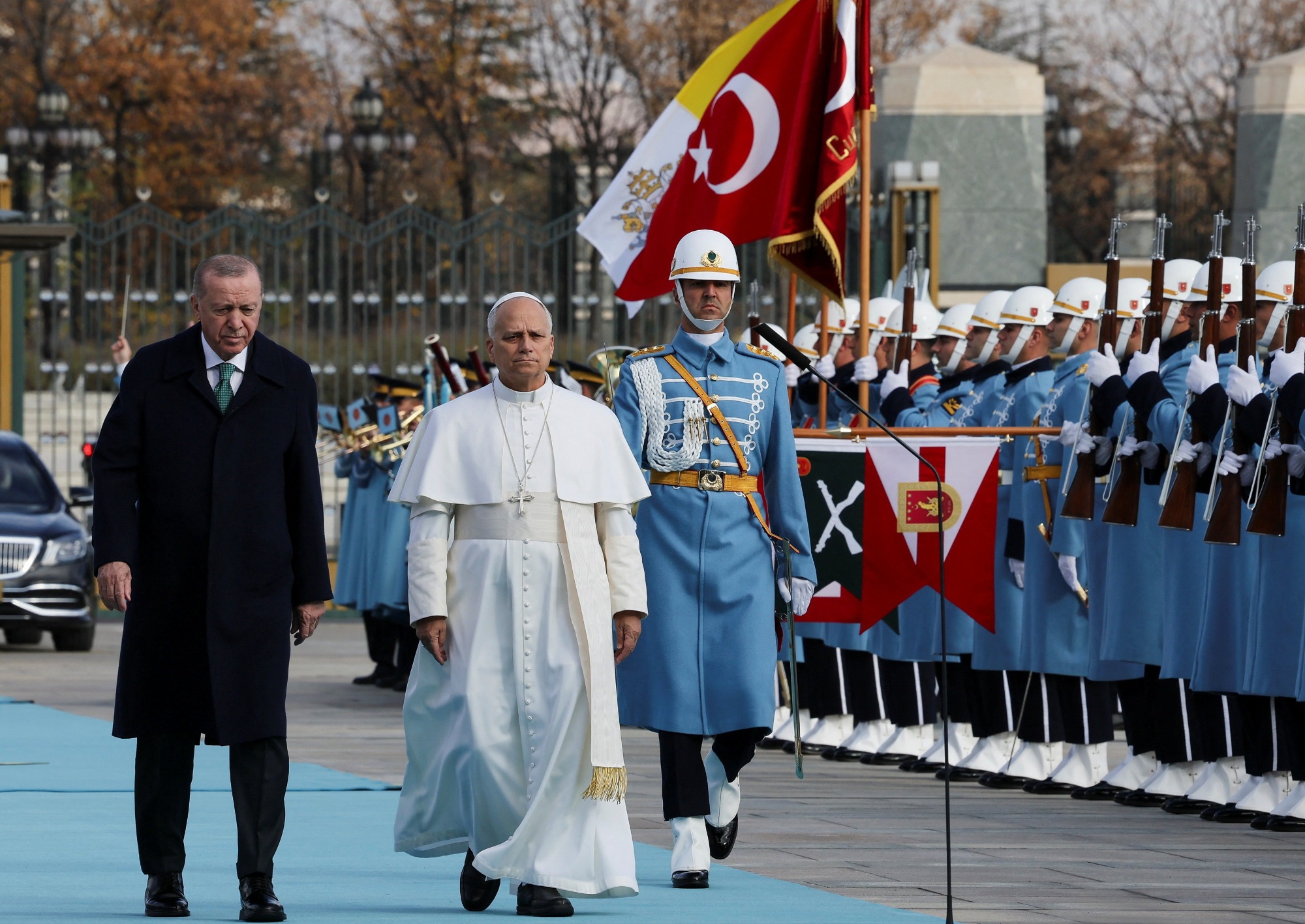 Papa 14. Leo, Anıtkabir’de Gazi Mustafa Kemal Atatürk’ün mozolesine çelenk bıraktı. Mozole önünde sırtını dönmeden saygı duruşunda bulunan Papa, ardından karşılama heyetiyle fotoğraf çektirdi ve ziyaretçi defterini imzaladı. Ankara ziyaretinin devamında Cumhurbaşkanı Recep Tayyip Erdoğan ile Cumhurbaşkanlığı Külliyesi’nde görüşmesi planlanıyor.