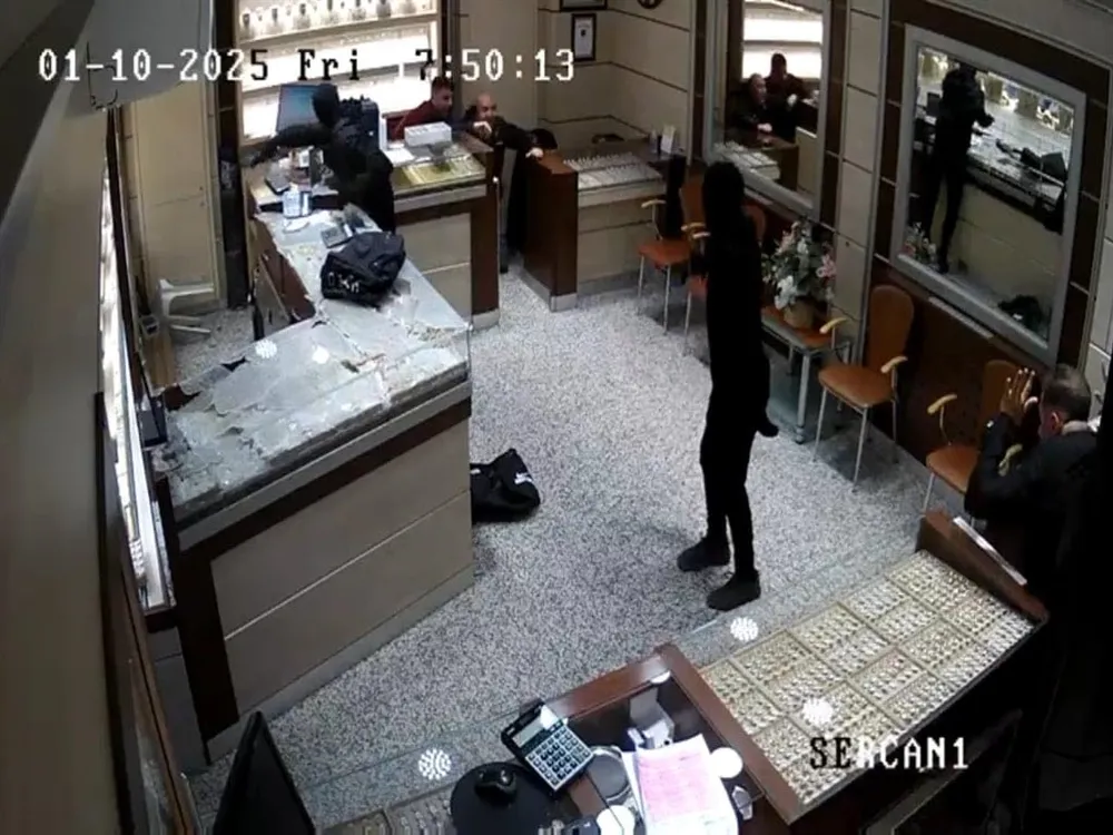 Soygun sırasında şüphelilerin dükkanı boşalttığı anlar, iş yerinin güvenlik kameralarına yansıdı. Görüntülerde, soyguncuların altın dolu çantalarla kaçarken etrafa silah doğrulttuğu görülüyor.