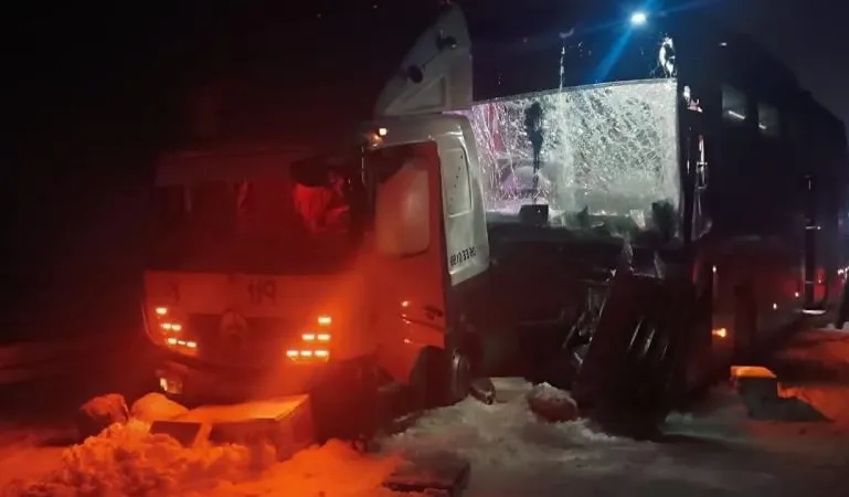 Kars’ın Sarıkamış ilçesinde etkili olan kar yağışı ve buzlanma, trafik kazasını beraberinde getirdi. Karakurt mevkisinde meydana gelen kazada bir yolcu otobüsü, kaygan yolda kontrolden çıkan kamyona arkadan çarptı. Kazada 9 kişi yaralandı.
