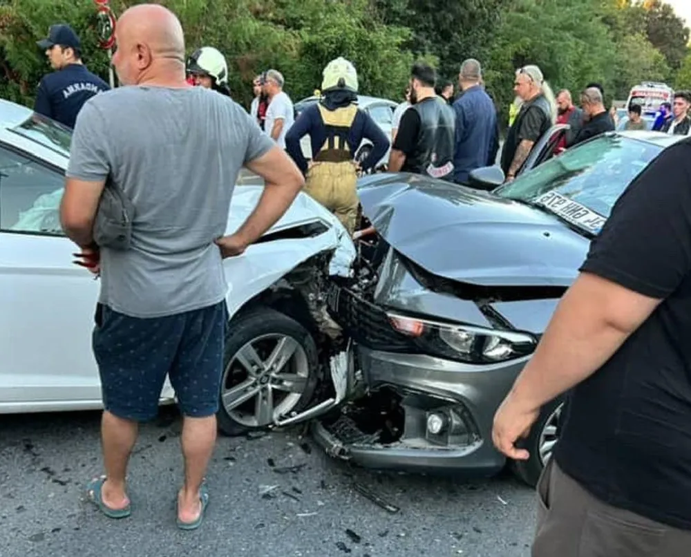Görsel alt metin önerisi: Sarıyer Gümüşdere’de meydana gelen trafik kazası sonrası araçların hasar aldığı görüntü.