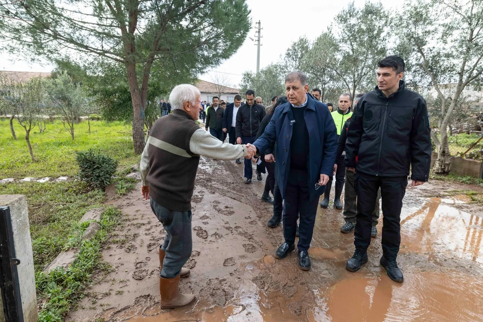 İzmir Büyükşehir Belediye Başkanı Tugay, Payamlı’nın ardından Ürkmez’e geçerek incelemelerde bulundu. Hamam Deresi ile Küçük Ürkmez Deresi’nin taştığı bölgede vatandaşlarla bir araya gelen Tugay, su baskınından etkilenen evleri ziyaret ederek bilgi aldı.