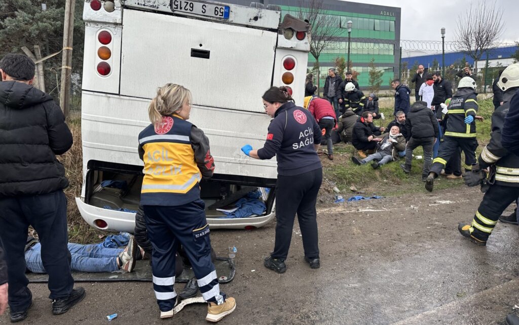 Kaza, saat 15.30 sularında Muratlı-Büyükkarıştıran karayolu üzerinde, bir kimya fabrikasının yakınlarında yaşandı. Akın Raşel Tekstil Boyahanesi işçilerini taşıyan 59 S 6215 plakalı servis midibüsü, Raif A. (63) idaresindeyken, yağış nedeniyle kayganlaşan yolda kontrolden çıkarak takla attı. Araçta bulunan 24 işçi ile sürücü yaralandı.
