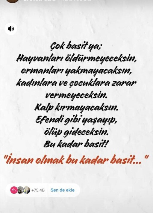 Cinayetin ardından bir diğer dikkat çeken unsur ise Sinem S.'nin sosyal medya hesabından yaptığı son paylaşım oldu. Yaşam hakkı, barış ve insanlık üzerine yazdığı satırlar, ölümünden kısa süre sonra sosyal medyada binlerce kişi tarafından paylaşıldı: