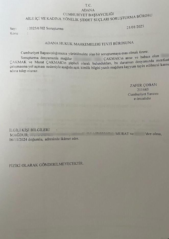 Adana'da Murat ve Seda Çakmak çifti, 2,5 ay önce dünyaya gelen bebekleri M.T.'ye yönelik bir sağlık uygulamasını reddetti. Çift, doğum sonrasında bebeklerinden topuk kanı aldırmama kararı alırken, aşı yapılmasını da istemedi. Aile, hastane evraklarını imzalayarak taburcu olduktan sonra, bu durum sağlık ocağına bildirildi. Sağlık ocağı, durumu Sağlık Bakanlığı'na iletti. Bakanlık, ailenin bu tutumunu uygun görmeyerek, aleyhlerine dava açtı ve Adana 6. Sulh Hukuk Mahkemesi'nde dava süreci başlatıldı.